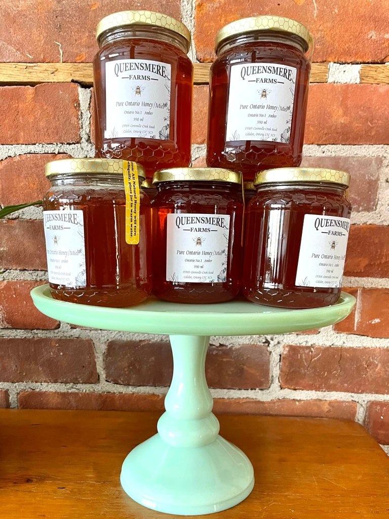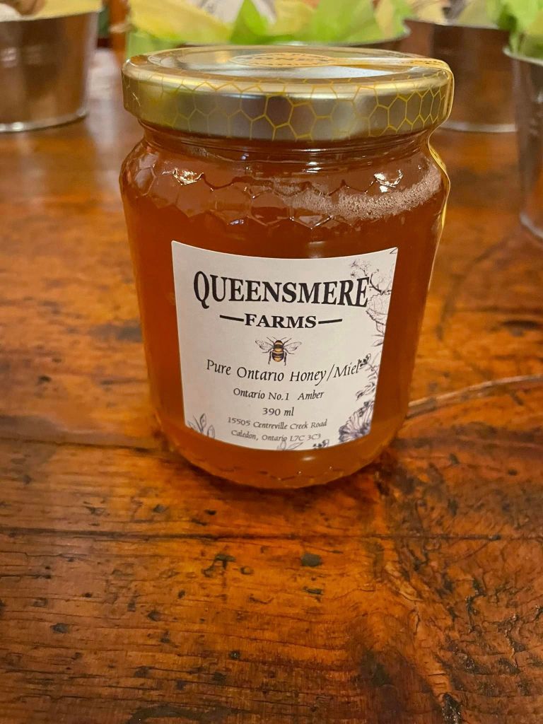 Queensmere Farms is home to a thriving honey bee population. Our bees spend their days gathering and collecting from wildflowers throughout our farm. We harvest honey once a year in the fall.