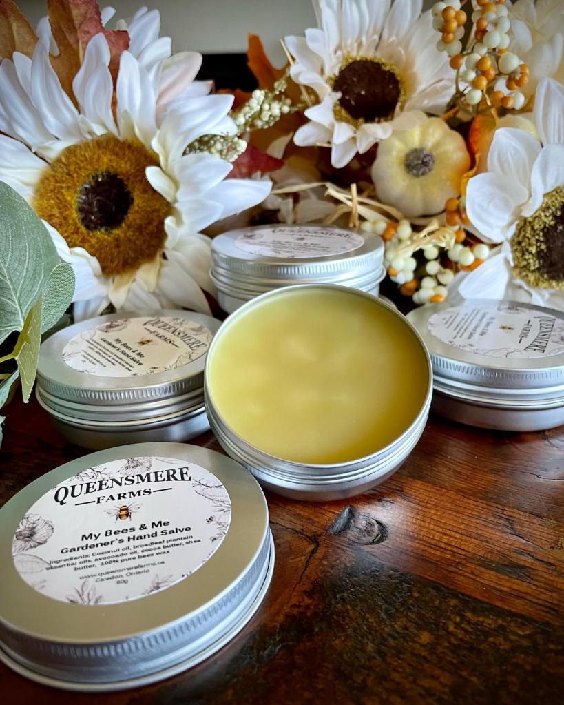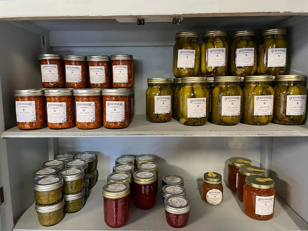 We make a variety of preserves and antipasto. We also have hand creams, bath salts, lip balms, and beeswax candles. Everything is made, as much as possible, with ingredients grown on our farm or local farms.
